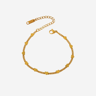 Delicate yet radiant, the Lyra Bracelet captures effortless elegance through its fine gold-plated chain adorned with subtle heart details. Designed for everyday wear, it brings a touch of warmth and femininity to your look — a refined expression of love and modern simplicity.