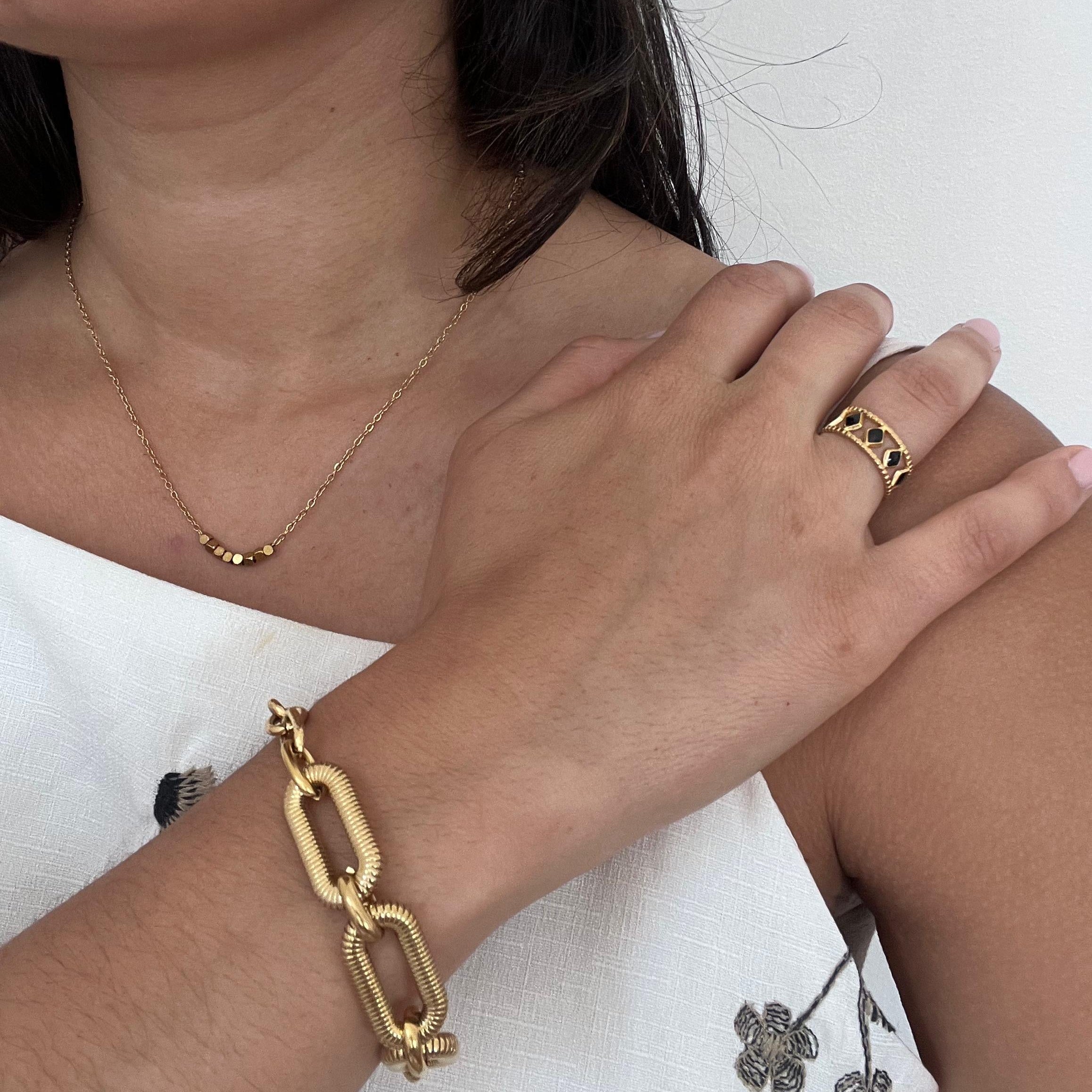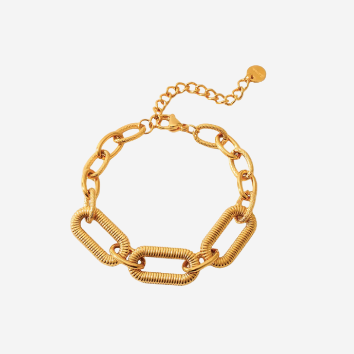 Sculptural and bold, the Bella Bracelet stands out for its distinctive textured links and contemporary silhouette. Designed to make a statement with every movement, it blends timeless elegance with modern craftsmanship — the perfect balance between structure and softness.