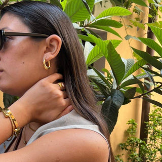Sculpted in a perfect arc, the Halo Hoop is a statement of pure elegance. With its bold silhouette and luminous finish, it frames your face with a subtle yet powerful glow. Available in radiant gold and sleek silver, it’s timeless piece that whispers sophistication in every setting. For the woman who knows her presence is her greatest accessory.