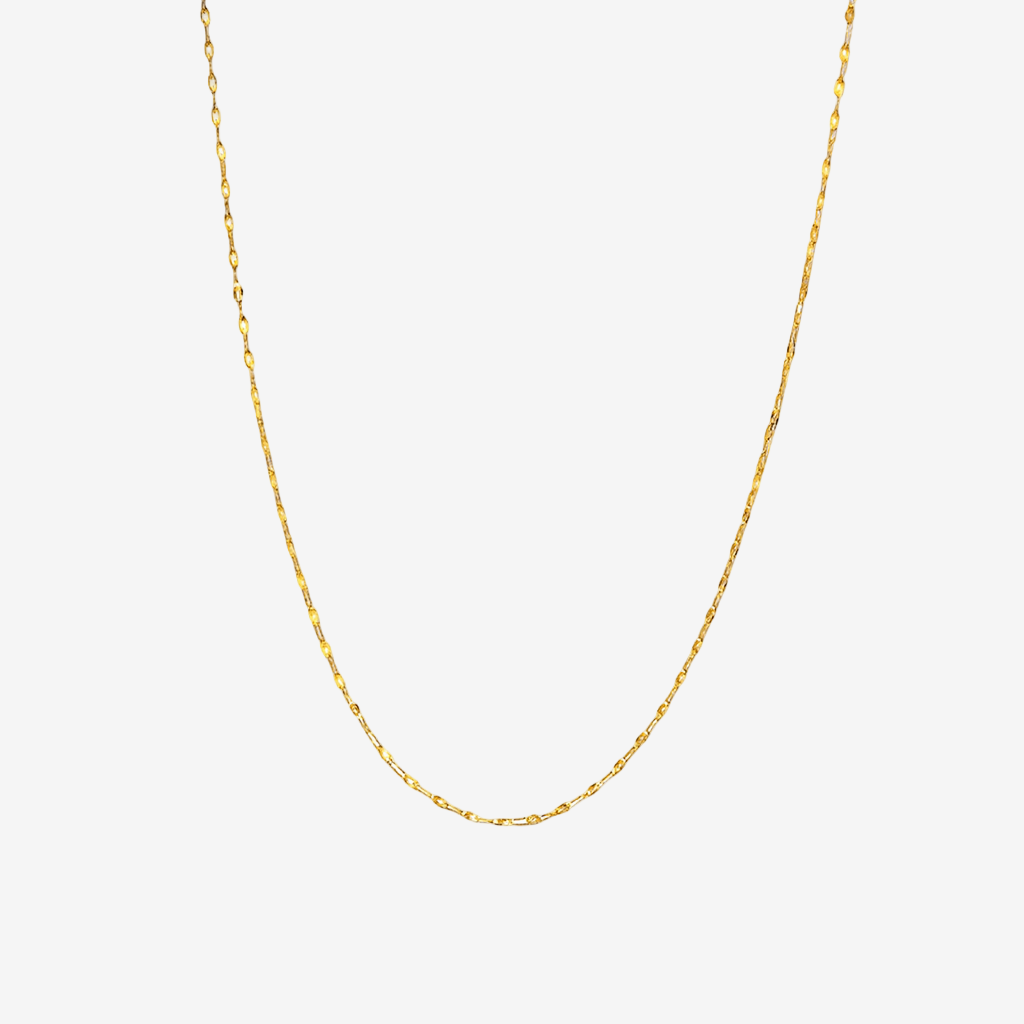 The Sparkle Necklace is a delicate chain with a luminous, faceted design that catches the light with every move. Lightweight yet impactful, it’s your go-to piece for an effortless shimmer from day to night.