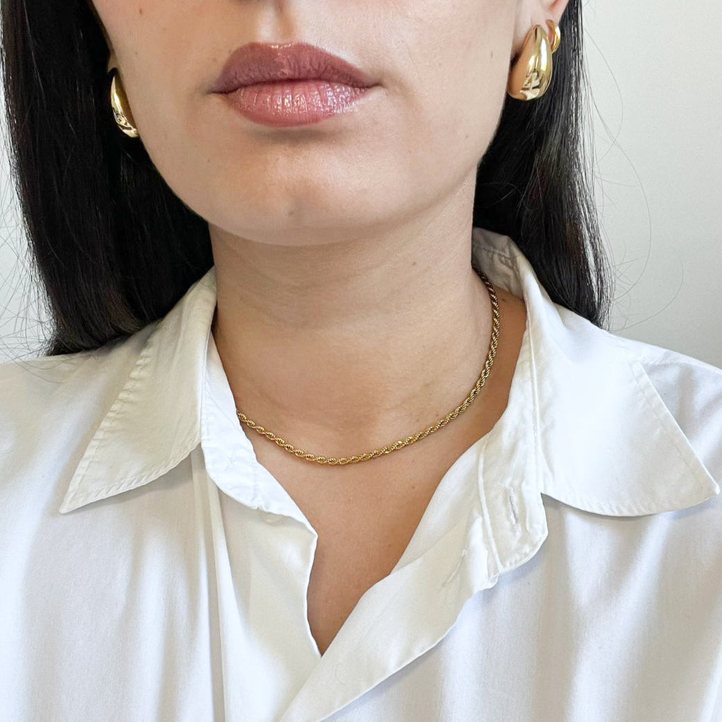 A timeless chain with a subtle twist. The Twist Necklace flows with a rope-inspired design that catches the light beautifully. In gold or silver -perfect for layering or wearing solo for a sleek, elevated touch.