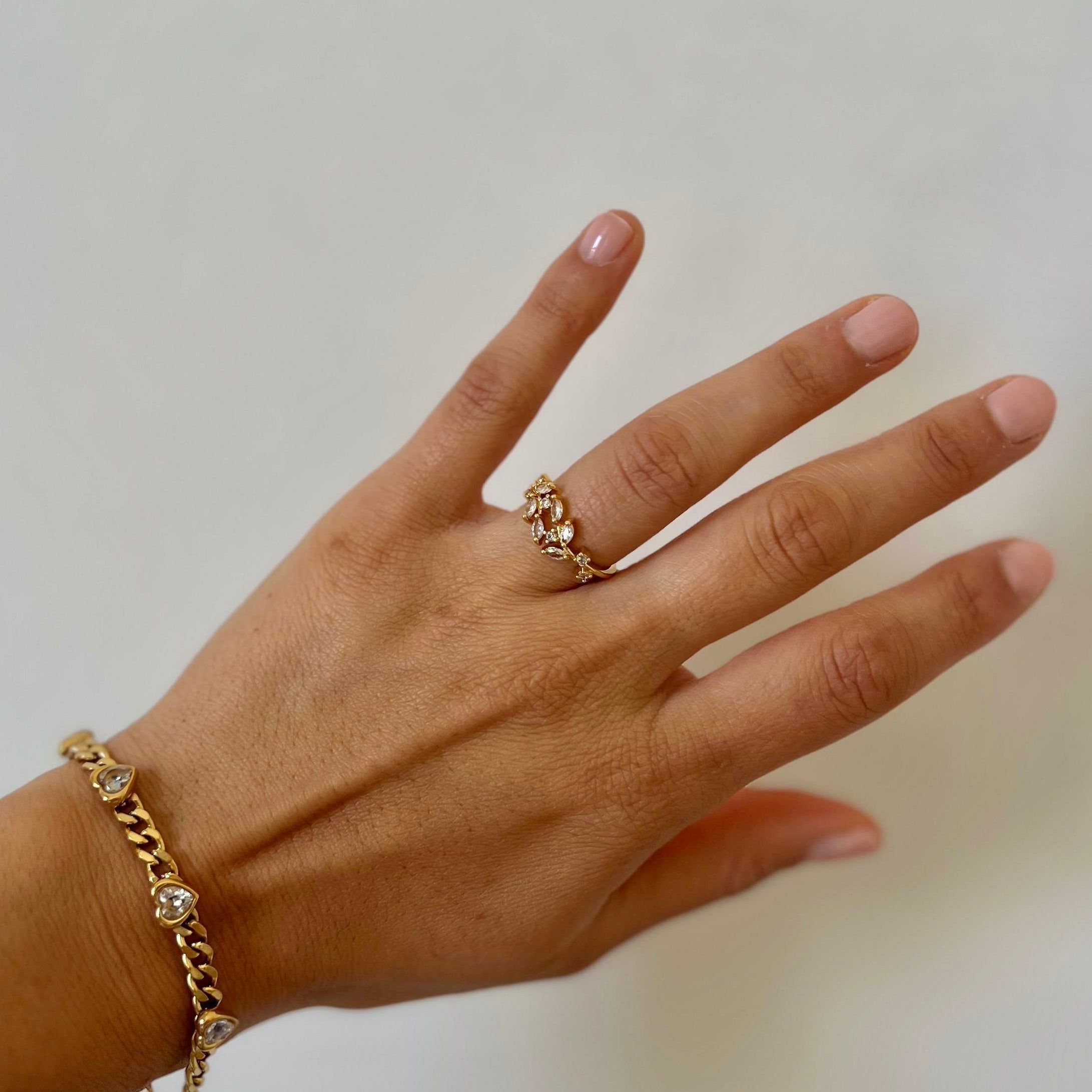 Inspired by soft light and delicate motion — Lumina captures the glow of crystal reflections on gold. Its organic shape and branch-like sparkle create a timeless sense of grace and quiet strength.