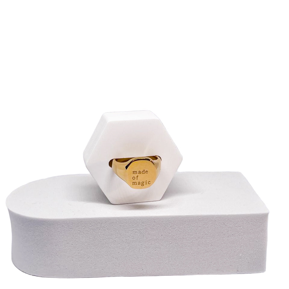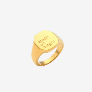 A signet that carries a quiet power. Its clean lines frame the words made of magic, a reminder of the spark you hold within. Designed to be worn every day, with everything, by those who believe in their own light.