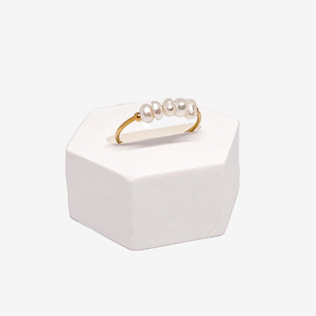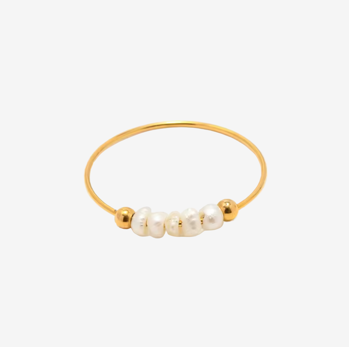 Delicate as the tide, Oyster Bloom captures the quiet poetry of the sea. A fine band adorned with a row of petite pearls, each one unique, evoking the treasures found within a seashell. Minimalist yet full of charm, it’s a whisper of elegance for your everyday.