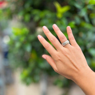 The Ribbed Core Ring is a sleek reinterpretation of a timeless classic. Its symmetrical ridges and perfectly closed band exude refined strength, while the cool silver finish adds a modern, polished edge. Designed for the woman who finds beauty in clean lines and effortless sophistication.