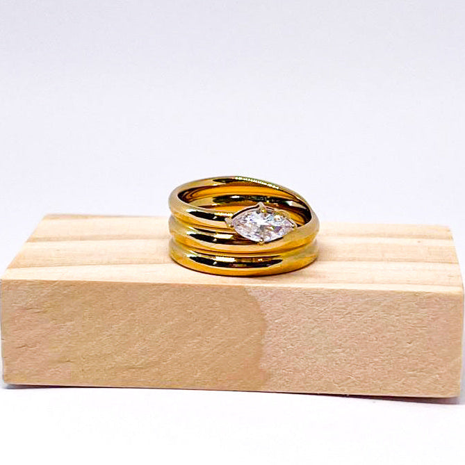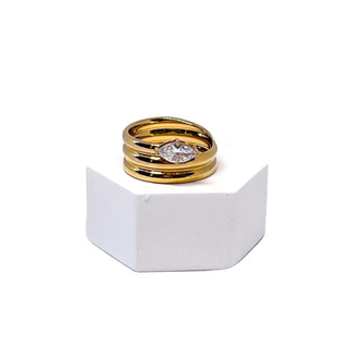 A luminous centrepiece for your everyday orbit. Solar Core radiates with a sleek triple-band design crowned by a central stone that captures and reflects the light with every move. A piece that feels as timeless as the sun, and just as magnetic.