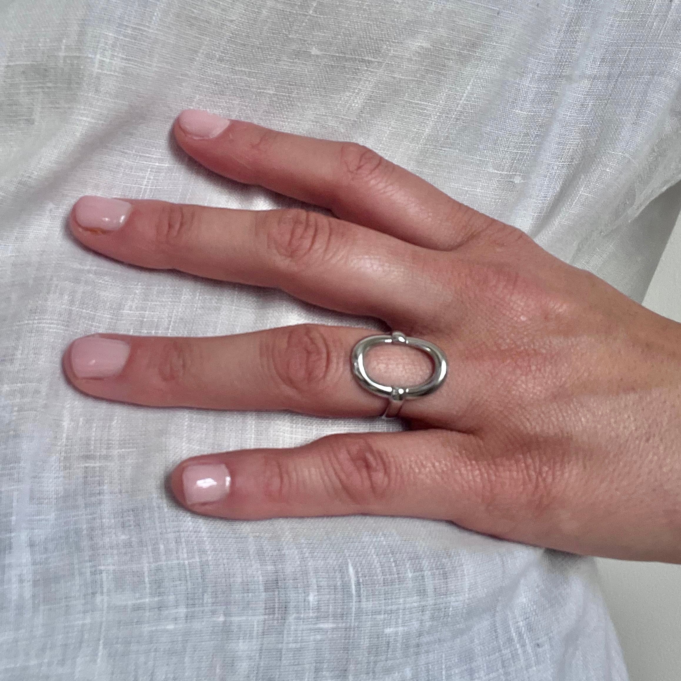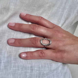 A refined statement that blends structure and minimalism — the Oval Ring features a sleek oval silhouette crafted in polished stainless steel. Its open, adjustable design adds a sculptural touch that feels modern yet timeless. Made to complement any look, it brings subtle strength and effortless sophistication to your everyday style.