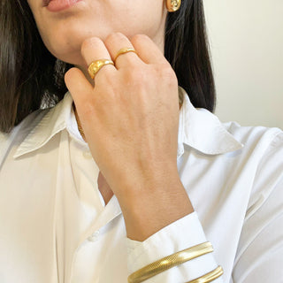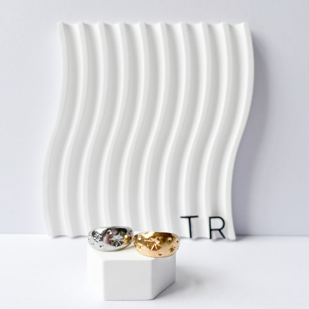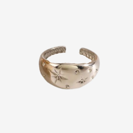 Inspired by the constellations, Orion wraps your finger in a galaxy of tiny engraved stars. Available in gold and silver finishes, it’s a celestial statement that turns every gesture into stardust.