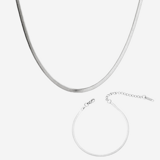 The Snake Set brings sleek minimalism to everyday wear. Its fluid texture and mirror-like shine make it the ultimate modern classic.